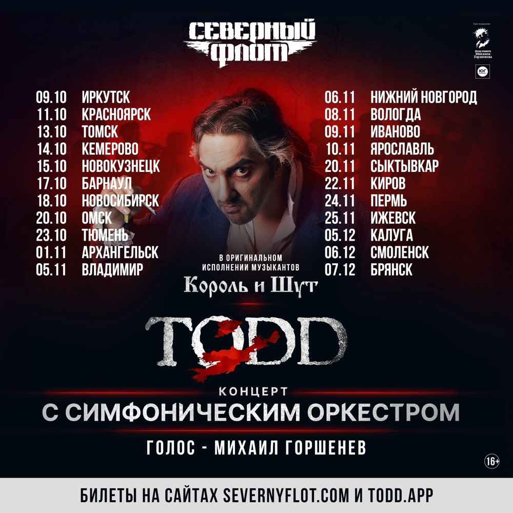 Дворец спорта «Труд» города Иркутска приглашает на премьеру концертной версии мюзикла TODD с симфоническим оркестром.