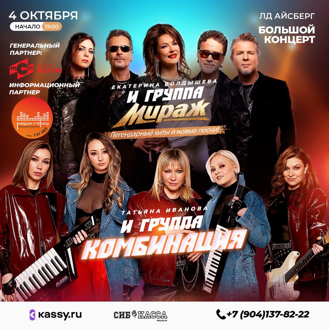 4 октября 2025 года в Иркутском дворце спорта «Айсберг» выступят легендарные группы «Мираж» и «Комбинация».