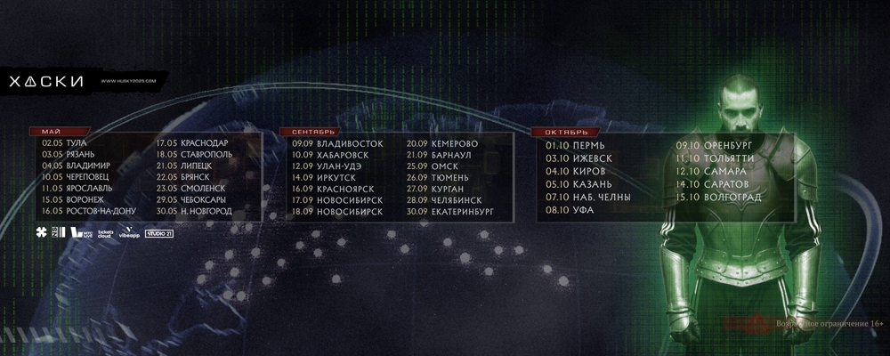 Купить билеты на выступление Хаски на сцене концерт холла города Иркутска онлайн возможно на сайте iCity.life.